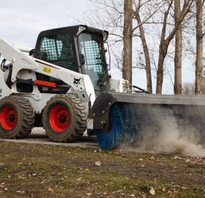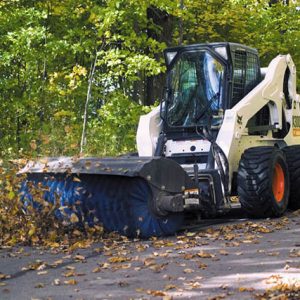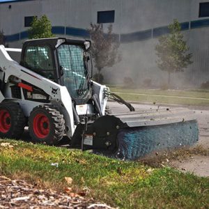 يستخدم ملحق المكنسة بزاوية مكنسة دوارة هيدروليكية تدفع القاذورات وغيرها من الحطام بعيدًا عن الآلة. ستقوم المكنسة بزاوية بكنس الحطام باستمرار أمام الآلة أو وجه المكنسة لسحب المواد إلى الجانب.