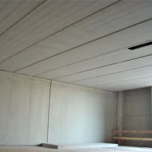 With prestressed concrete solid floorings the construction time is considerably reduced. After the slab has been laid, immediately it can be fully loaded. All that is required is joint grouting and, if necessary, the circumferential ring anchor. The support-free installation of the slabs with large spans allows immediate, unobstructed work on the floors.