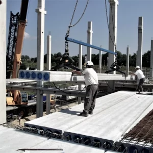 Precast concrete construction is cost-efficient. Elements of the flooring / ceiling system are efficiently prefabricated in the factory in an industrial process, complete with built-in parts and recesses, and quickly assembled on the construction site with minimal effort.