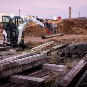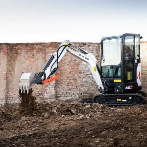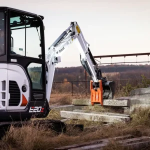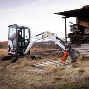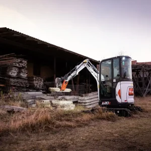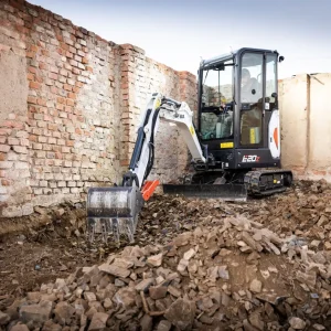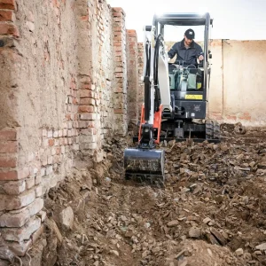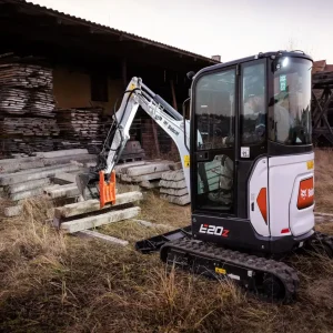The Bobcat® E20Z compact excavator (mini excavator) delivers impressive performance in confined spaces with the need for only minimal repositioning. The operator can hydraulically retract the undercarriage to a width of only 98 cm in order to travel through gates or between walls and houses, then expand it to 136 cm for a wider footprint and greater performance. The E20Z has zero tail swing for versatility and maneuverability on the most compact jobsites.