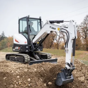 A popular choice in the 3-4 ton size class, the Bobcat® E35Z mini excavator excels on jobsites where space is confined, such as next to buildings, walls and other obstacles. The Zero Tail Swing (ZTS) gives the operator unrestricted rotation, greater flexibility and reduced potential for damage to the machine and surrounding property. You can boost your digging performance with the long arm option or a clamp.