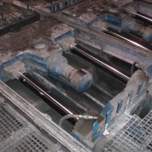 For group tensioning, the tensioning wires / strands are first cut to length evenly and loosely hooked into the tensioning anchors. Then the tensioning wires / strands are lightly pretensioned manually in a uniform manner. Finally, powerful hydraulic cylinders tension all wires to the desired pre-tensioning force in a single pull. Tensioning lengths and pressures are manually recorded and manually transferred to the tensioning protocol.